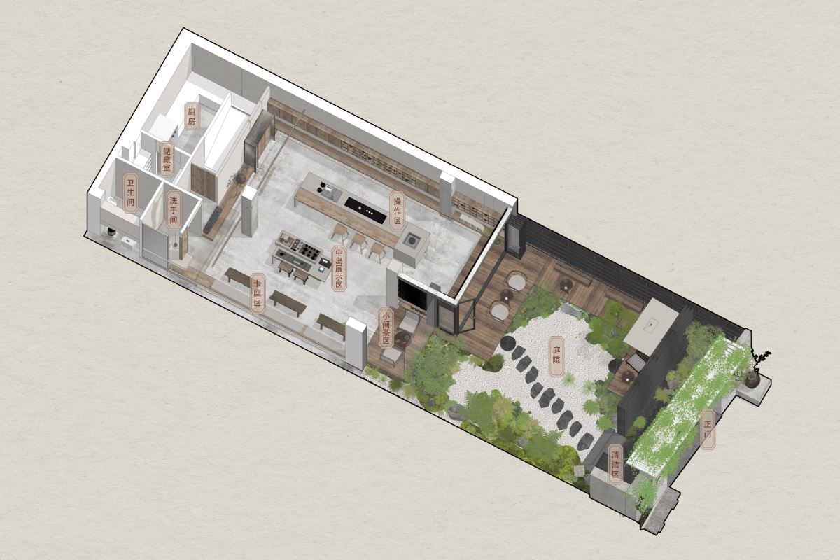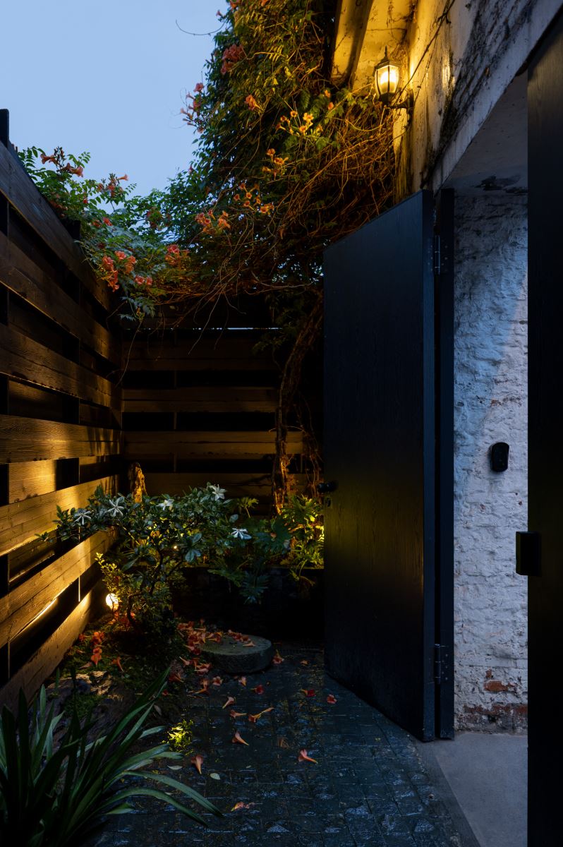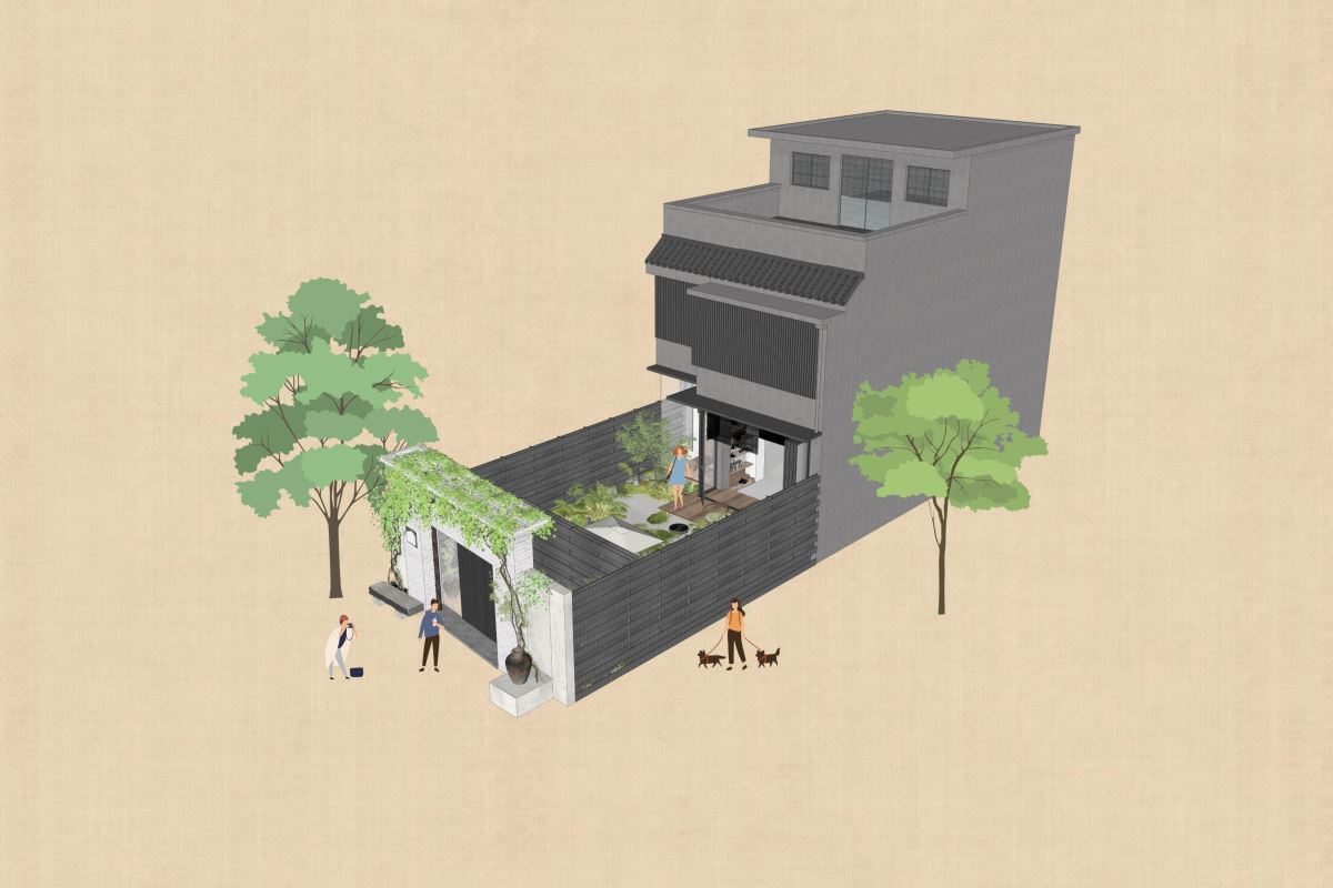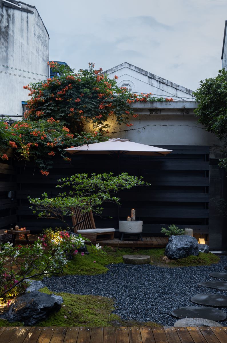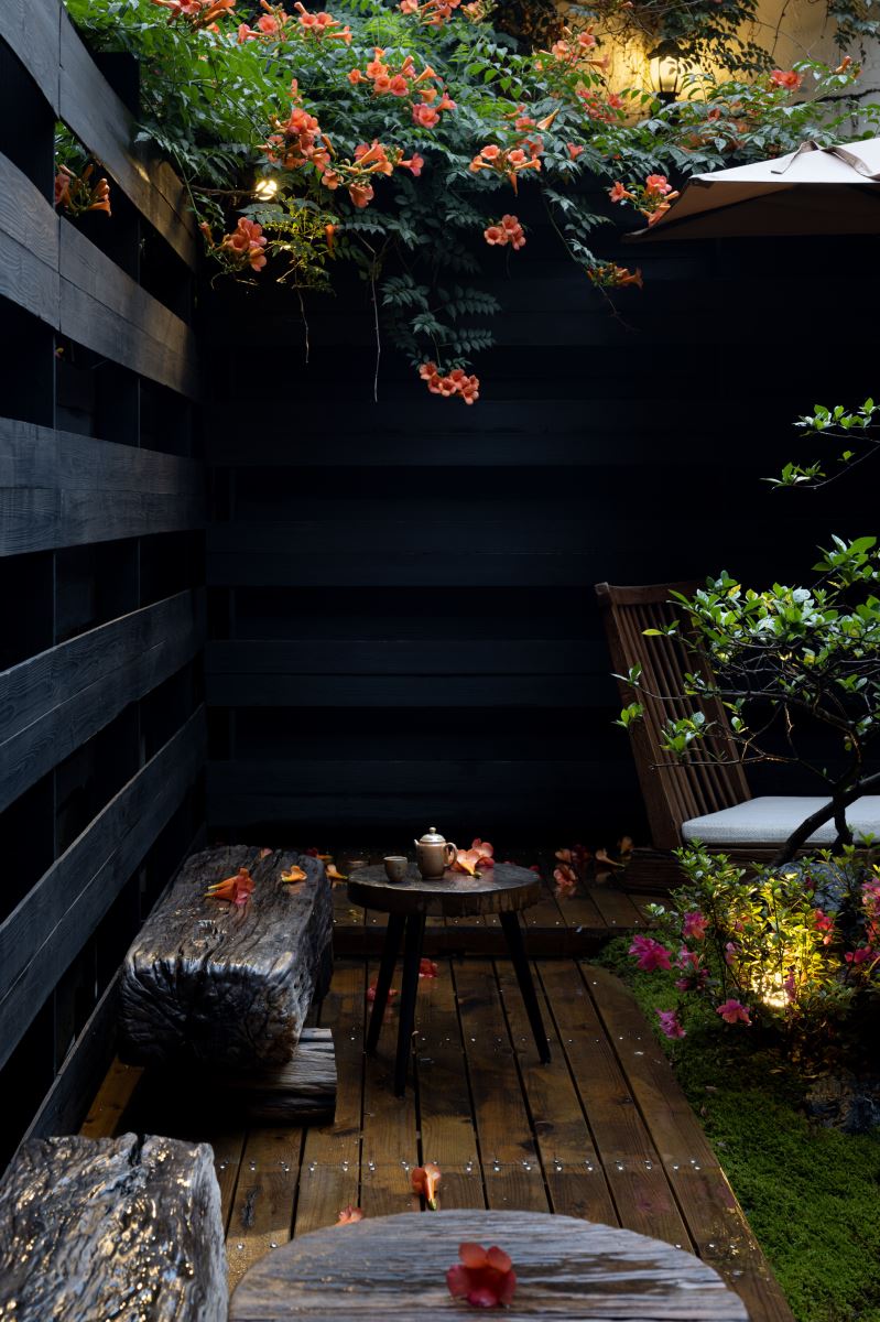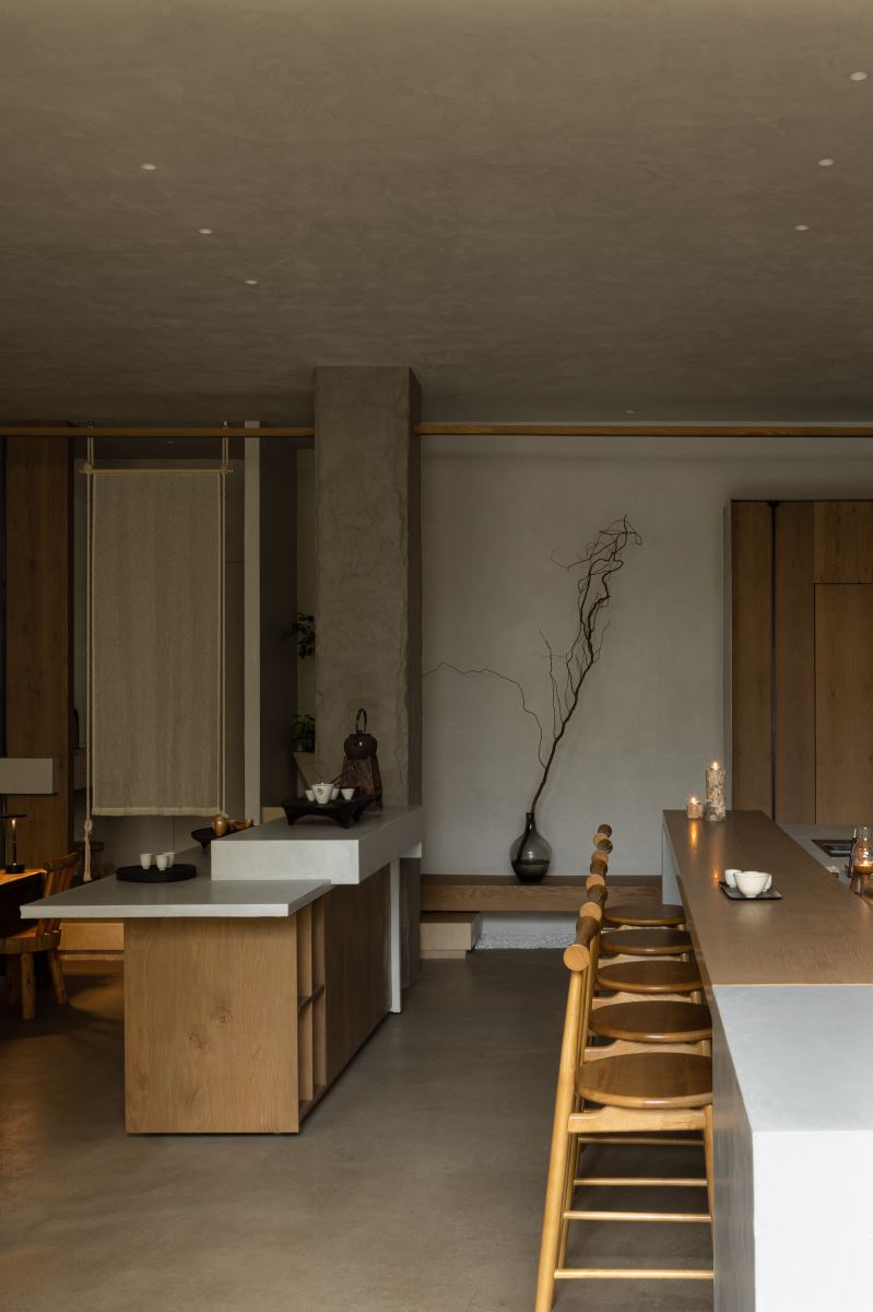 作品說明 /在溫州,在老城區,在72條老巷之中,我們設計了這樣一間茶廬:依託巷弄老宅將古樸與自然融合,去發揮建築的歷史韻味和茶器茶物的性格特色,讓文化底蘊和寧靜優雅去充盈這個茶空間。 這是一座帶有庭院的二層老宅,我們有意保留了老宅的原有結構,將老式合院的門頭、磚牆通過修繕和設計,讓這些元素煥發新的生命力。依託黑色碳化木柵欄、鋁合金格柵,將老宅的不融洽一面適度“收藏”。用大落地門窗打開原始落地房的採光格局,儘量拾光入戶,使室內明亮和寧靜。新鋪設了戶外木,也讓院落與室內空間互通。合圍式的院落佈局和園藝設計手法,烘托出古樸和神秘,自然與輕鬆之感。 在室內空間佈局上,一樓作為茶空間,二樓為業主自住使用。因此,我們隱藏了樓梯,並儘量減少其對空間的佔用。一字型的多功能超長茶台貫穿整個空間,讓客人能夠直觀面對茶藝師的沖泡、分杯、講解,亦如板前料理,將雙方的溝通距離無限拉近,增強品茗體驗。充足的茶器展示櫃,滿足了業主對於分享美好之物的期望,也讓茶藝的製作更具儀式感。 一個通透的茶憩小包間、一個緊湊而又舒適的卡座、一個可移動的展示中島台,一個多功能的超長茶台,共同構成了小而美,清新而自然的室內佈局。業主精心收來的家具和裝飾物與老宅的粗糙和原始相呼應。 在但廬,設計不僅僅是形式的呈現,更是品茶過程中的一部分。我們將舒適、雅致與文化融合,將茶道與空間美學結合,呈現獨特的茶文化體驗。