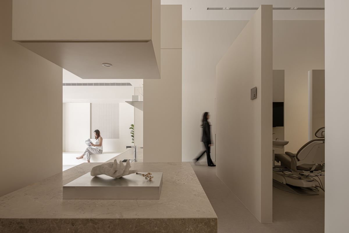 作品名稱 /砌作品說明 /解構、重組、軸線、排列,將齒列矯正過程體現於空間語彙;以純粹色調衍繹留白,將視覺主軸聚焦於探討量體間的關係。 量體序列堆疊依附,一如重組;退縮之間產生間隙,似若解構;延著量體刻畫的光營造光亮,同時伴隨產生陰影刻痕。 空間是拆解、抑或組構,詮釋取決於觀者想像,觀者的注視定義了場域。居於其中者的心境,映照於空間的解讀,又或許人們所關注的,始終在於試圖理解自身與空間的關係。