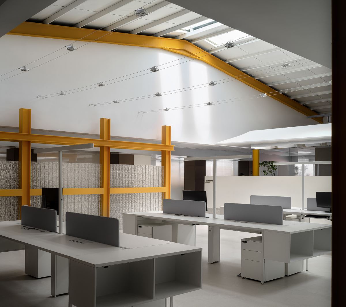 作品名稱 /回廊絮语作品說明 /新零售也好, 新辦公也好, 未來對於不同使用空間的革新將會越來越多。 本次為俊美公司打造的辦公空間是一次新的嘗試;在空間設計上我們打破傳統製造業墨守成規、刻板單一的固有模式,創造一個具有多元需求及創新性的辦公空間。 新材質與舊廠房的建築結構形成強烈反差。 極簡線條解構了混凝土的厚重體態, 外立面的結構構件與內部留白空間形成戲劇性對話。 這種解構與重組的建築語言,在虛實相生中構築起充滿張力的空間質感。
